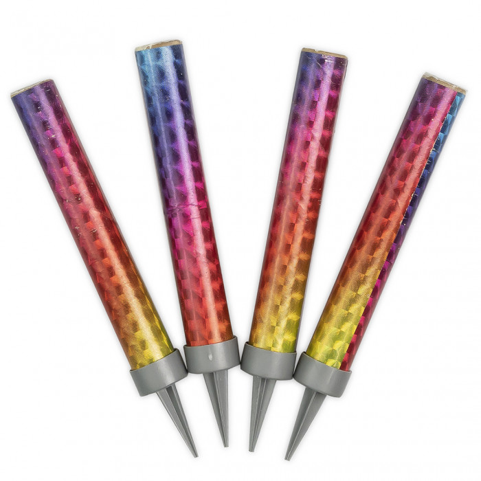 Свеча Фонтан для торта, 30 сек, Яркая радуга, Голография, 10 см, 4 шт.