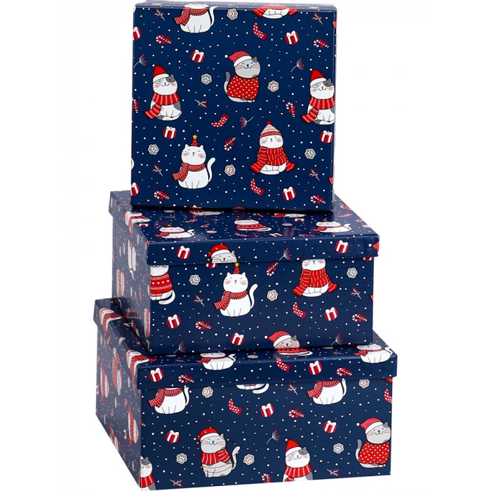 Набор квадратных коробок 3 в 1 Зимние котики (19,5х19,5х11-15,5х15,5х9)(Собс.разр.)
