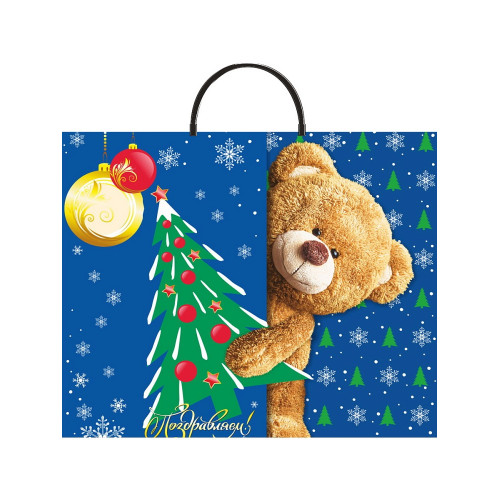 Стильно и недорого. Уникальный дизайн. Пакет с пластиковой ручкой Мишка с елкой 37х35/90 мкм Тематика: Новый Год