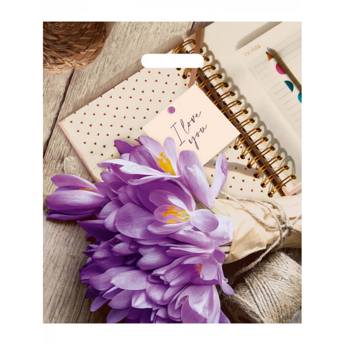 Стильно и недорого. Уникальный дизайн. Пакет вырубной Крокусы 37х46/30 мкм Тематика: Общепоздравительные