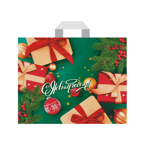 Пакет петлевой Новогодние подарки 58х50/65 мкм