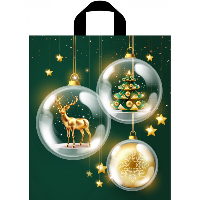 Стильно и недорого. Уникальный дизайн. Пакет петлевой Изумрудный блеск 43,5х38/35мкм Тематика: Новый Год