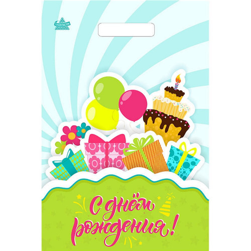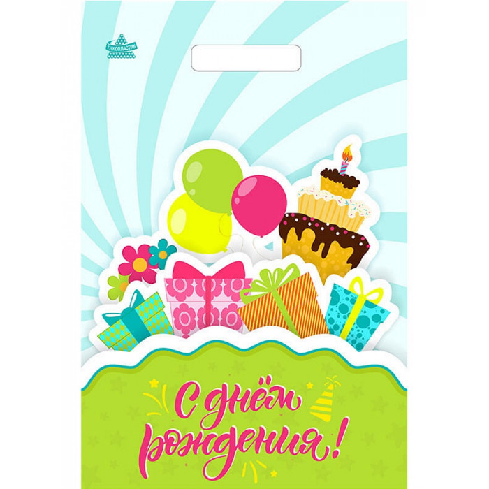 Стильно и недорого. Уникальный дизайн. Пакет вырубной Подарочный кекс 20*30/30мкм Тематика: День Рождения