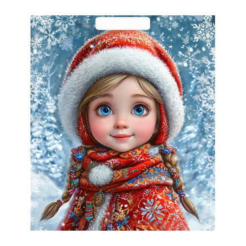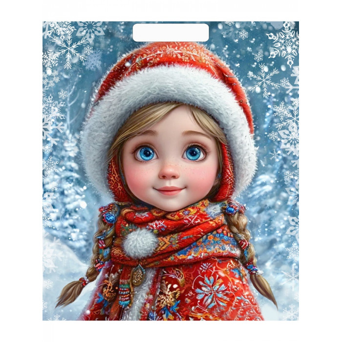 Стильно и недорого. Уникальный дизайн. Пакет вырубной Снегурушка 40х31/30мкм Тематика: Новый Год