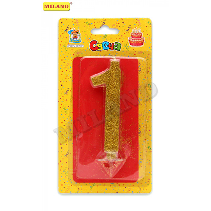 Свеча для торта Золотой глиттер (малая) Цифра 1