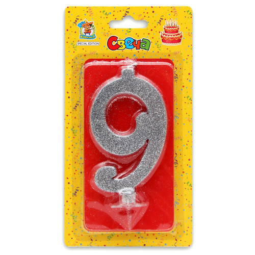 Свеча для торта Серебряный глиттер (большая) Цифра 9 С-1891