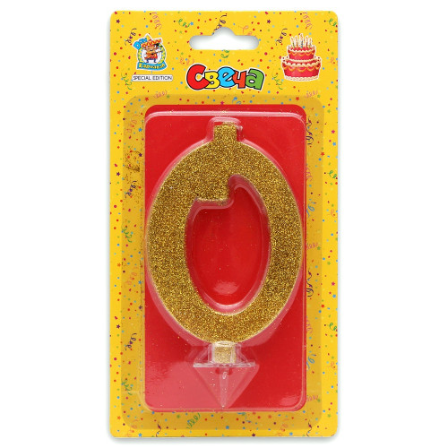 Свеча для торта Золотой глиттер (большая) Цифра 0