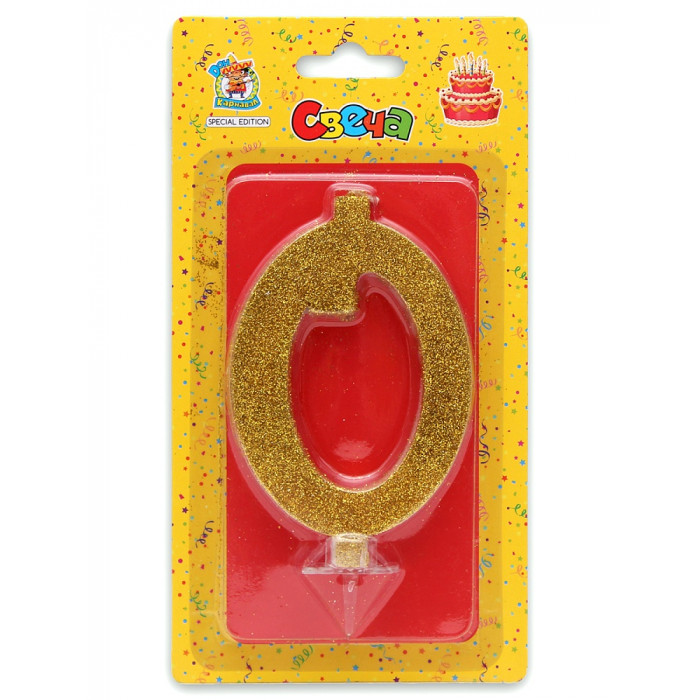 Стильно и недорого. Уникальный дизайн. Свеча для торта Золотой глиттер (большая) Цифра 0 Тематика: Общепоздравительные