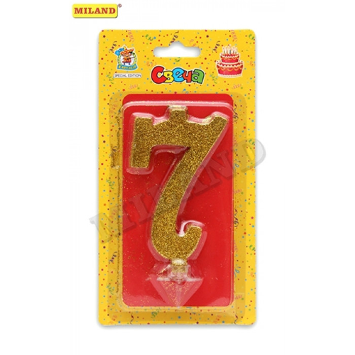 Свеча для торта Золотой глиттер (большая) Цифра 7 С-1899