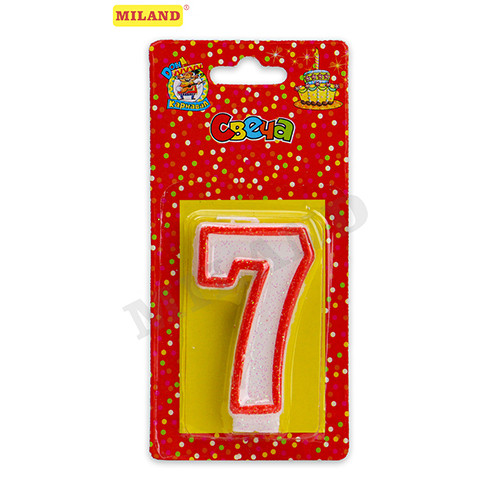 Стильно и недорого. Уникальный дизайн. Свеча для торта с красной окантовкой с блестками Цифра 7 Тематика: Общепоздравительные