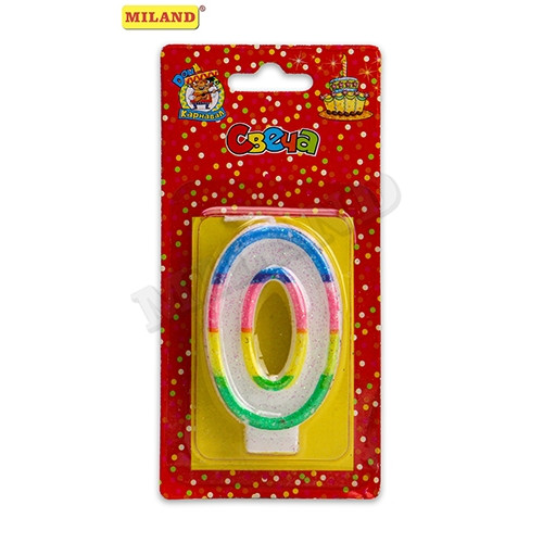 Стильно и недорого. Уникальный дизайн. Свеча для торта с разноцветной окантовкой с блестками Цифра 0 Тематика: Общепоздравительные