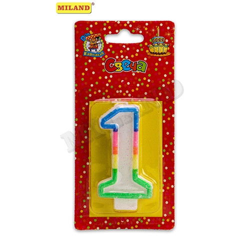 Свеча для торта с разноцветной окантовкой с блестками Цифра 1