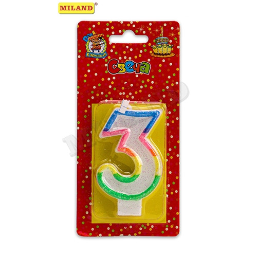 Свеча для торта с разноцветной окантовкой с блестками Цифра 3
