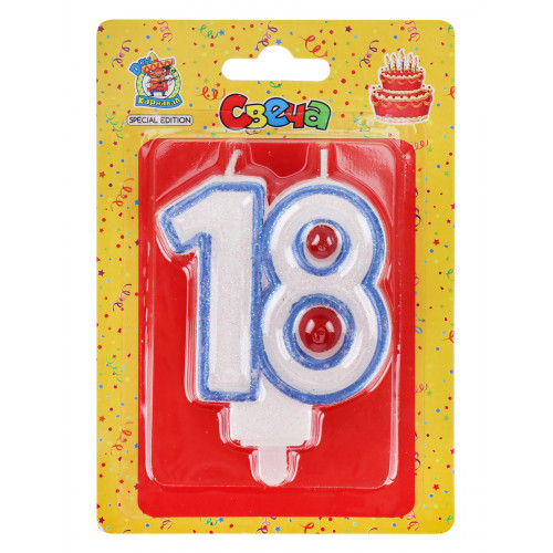 Свеча для торта. Значимые даты. Цифра 18, синяя