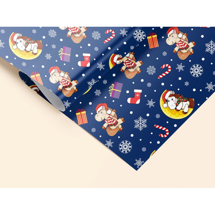 Стильно и недорого. Уникальный дизайн. Упаковочная бумага Забавные лошадки (70*100см, 10 л) (Собств.разраб.) Тематика: Новый Год