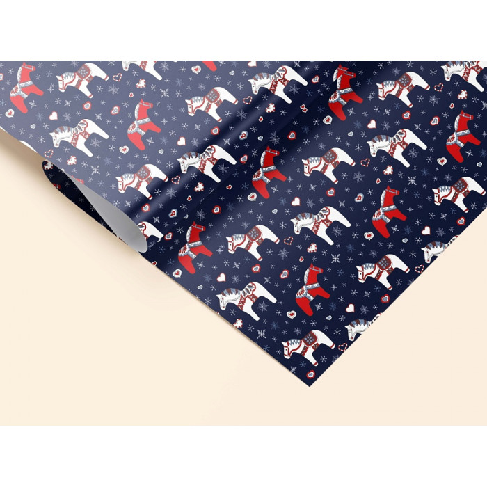 Упаковочная бумага Лошадки и снежинки (70*100см, 10 л) (Собств.разраб.)