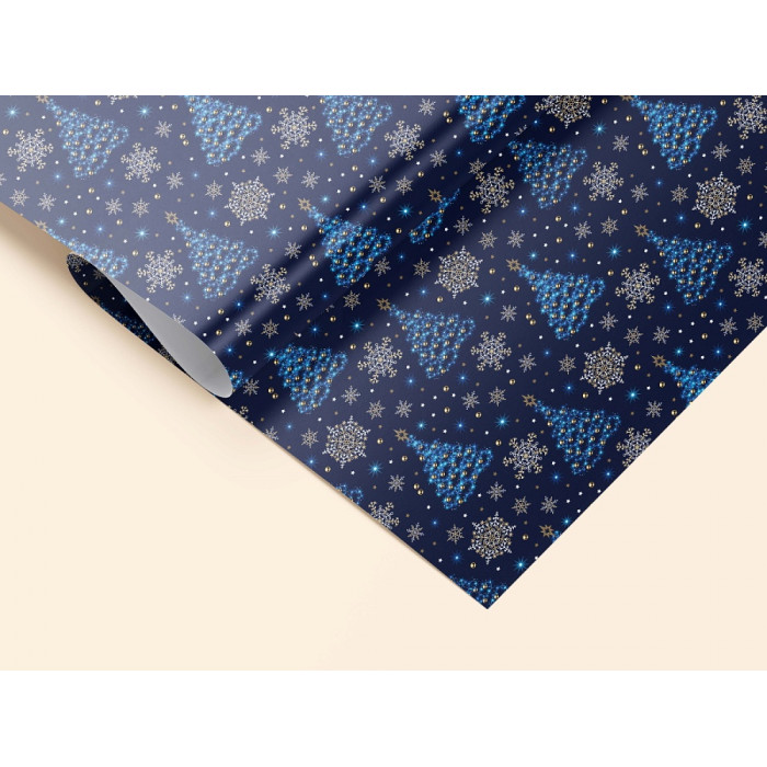 Упаковочная бумага Елочки и снежинки (70х100, 10 л, 5+0 доп пантон золото)(Собств.разраб.)