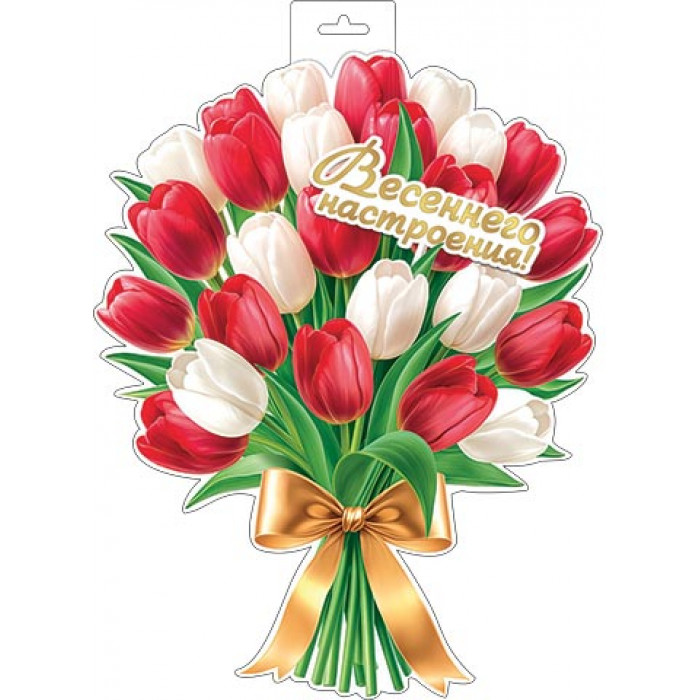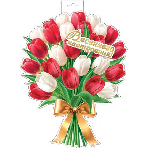 Стильно и недорого. Уникальный дизайн. Плакат фигурный (букет тюльпанов) Тематика: 8 Марта