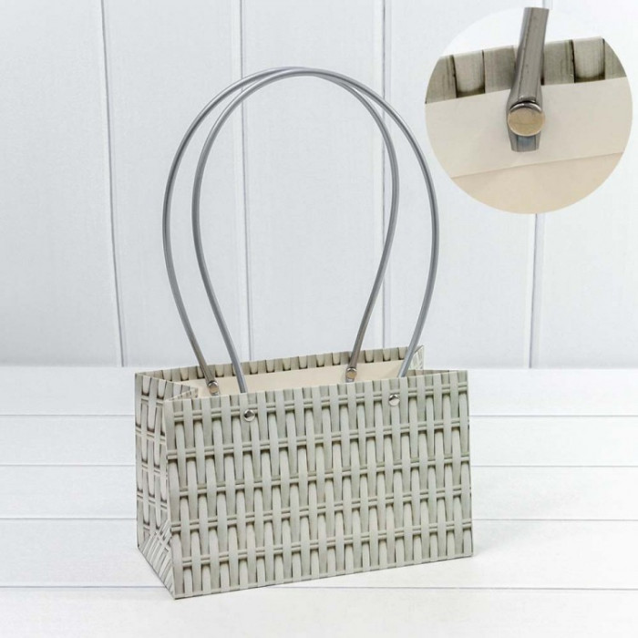Пакет подарочный "Ваза для цветов" 22*13,5*10,5 "Плетёный" Серый 1/10 1/120