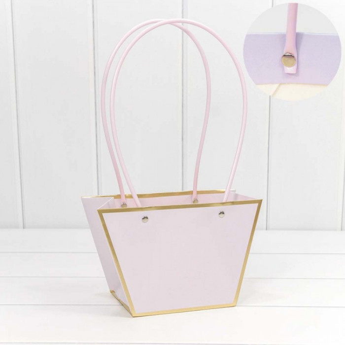 Пакет подарочный "Ваза для цветов" 21*13,5*10,5 с золотой рамкой Бледно-сиреневый 1/10 1/150