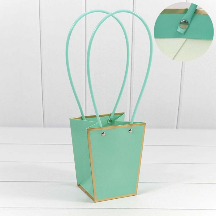 Пакет подарочный "Ваза для цветов" 15,5*13*9,5 с золотой рамкой Тиффани 1/10 1/150