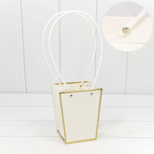 Пакет подарочный "Ваза для цветов" 15,5*13*9,5 с золотой рамкой Белый 1/10 1/150