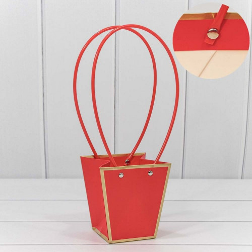 Пакет подарочный "Ваза для цветов" 12,5*12*8 с золотой рамкой Красный 1/10 1/200