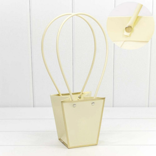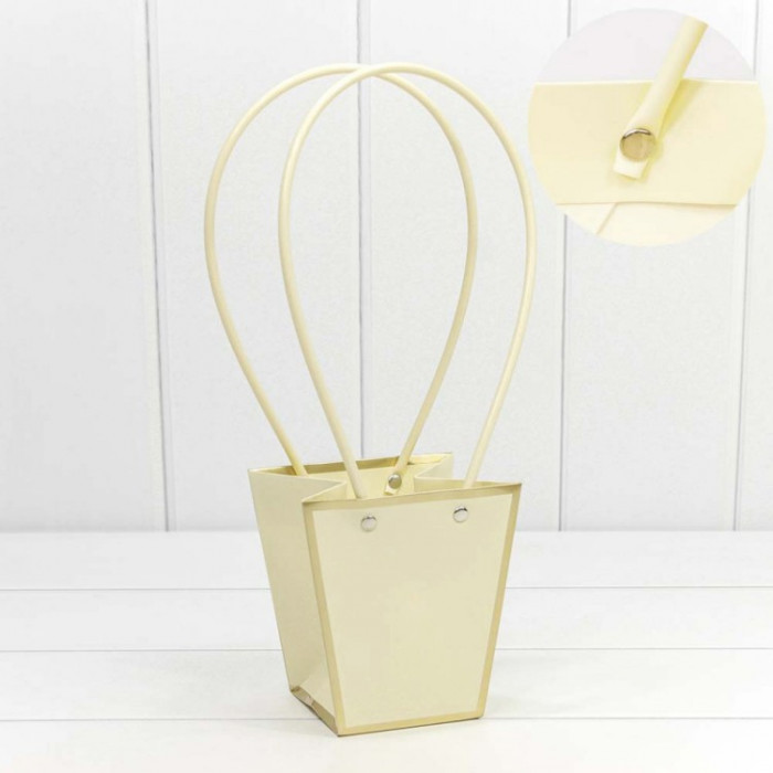 Пакет подарочный "Ваза для цветов" 12,5*12*8 с золотой рамкой Бежевый 1/10 1/200