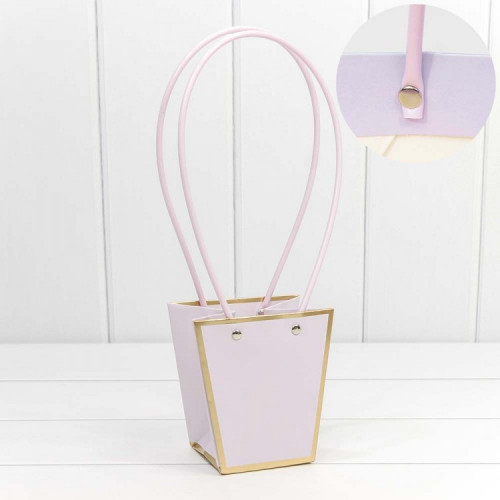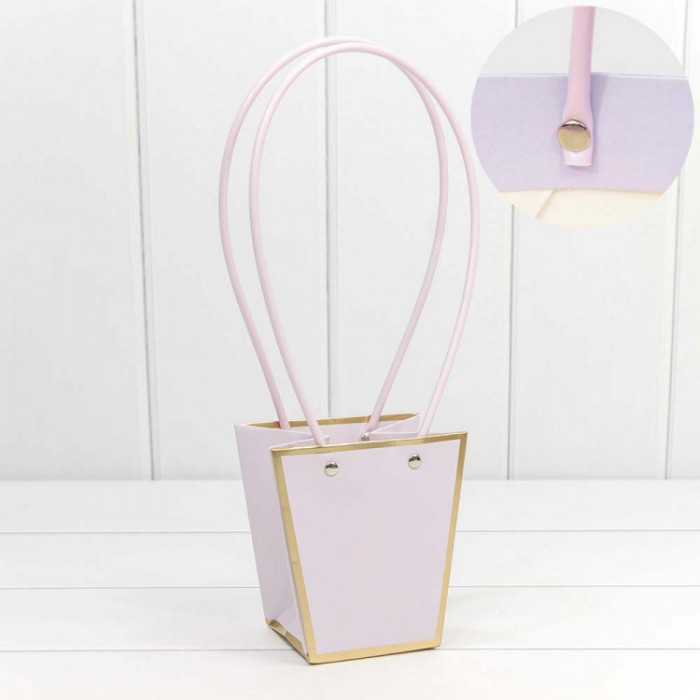 Пакет подарочный "Ваза для цветов" 12,5*12*8 с золотой рамкой Бледно-сиреневый 1/10 1/200