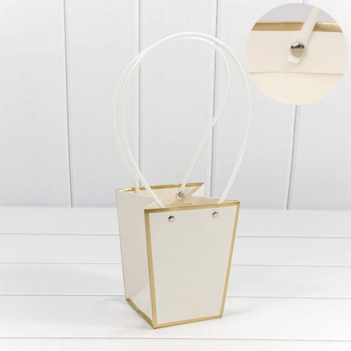 Пакет подарочный "Ваза для цветов" 12,5*12*8 с золотой рамкой Белый 1/10 1/200