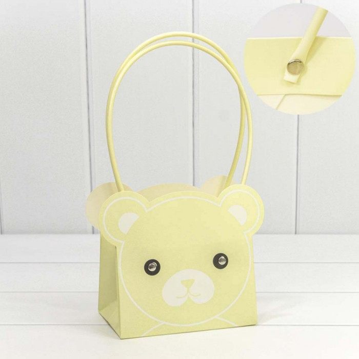 Стильно и недорого. Уникальный дизайн. Пакет подарочный "Ваза для цветов" 14,5*10*14,5 "Мишка" Бежевый 1/10 1/150 Тематика: Общепоздравительные