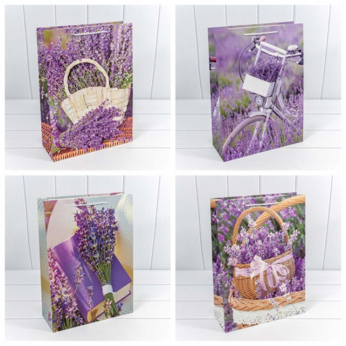 Стильно и недорого. Уникальный дизайн. Пакет подарочный "Лаванда" (микс 190) 31*42*12 210г 1/20 1/80 Тематика: Общепоздравительные