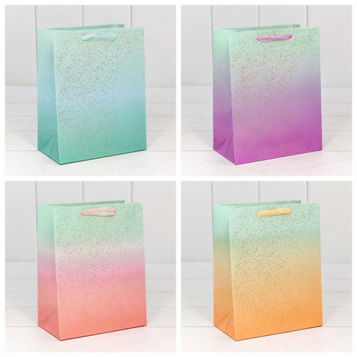 Стильно и недорого. Уникальный дизайн. Пакет подарочный "Градиент" с блестящими вкраплениями (микс) 18*23*10 230г 1/20 1/360 Тематика: Общепоздравительные