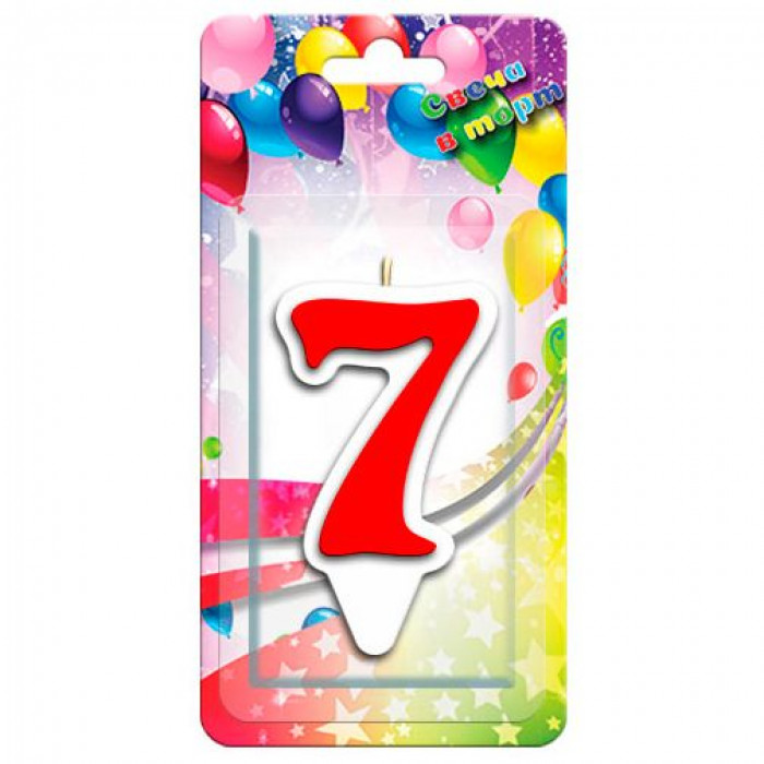 Свеча Цифра, 7 Белая окантовка, Красный, 9 см, 1 шт.