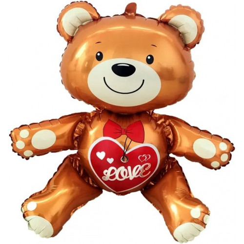 Шар (25''/64 см) Фигура 3D, (воздух) Сидячий мишка с сердцем, 1 шт.