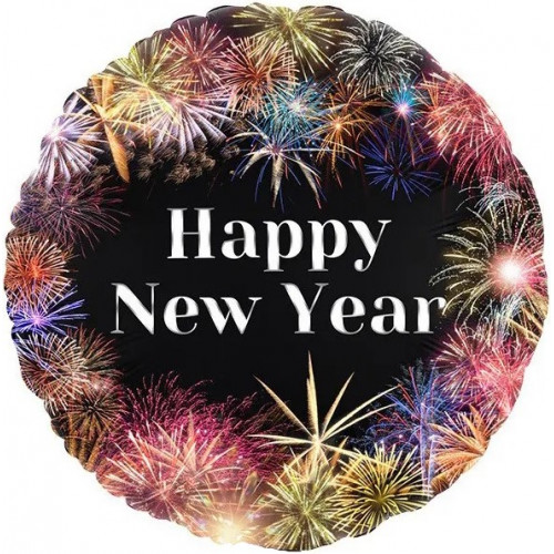 Стильно и недорого. Уникальный дизайн. Шар (18''/46 см) Круг, С Новым Годом (фейерверк), Черный, 1 шт. Тематика: Новый Год
