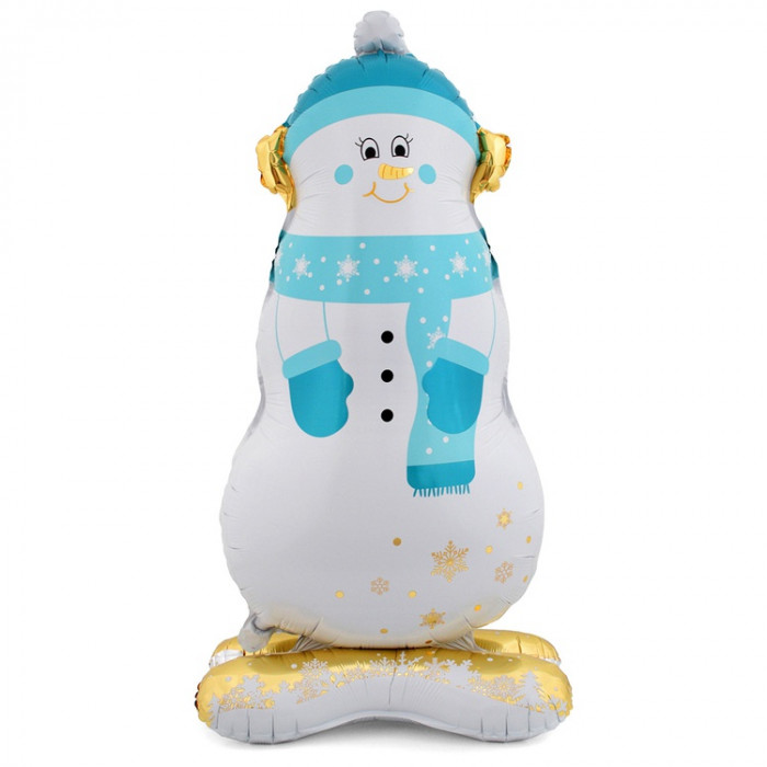 Шар 3D (47''/119 см) Фигура на подставке (воздух) Снеговик в голубом шарфе, 1 шт. в уп.