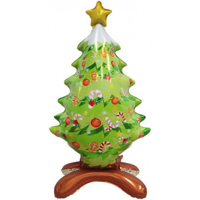 Шар 3D (26''/66 см) Фигура на подставке (воздух) Новогодняя елка, Светло-зеленый, 1 шт. в уп.