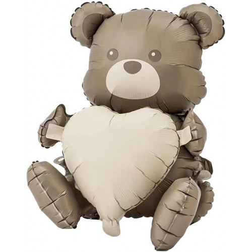 Шар (26''/66 см) Фигура 3D, Сидячий мишка с сердцем, Сатин, 1 шт. в уп.