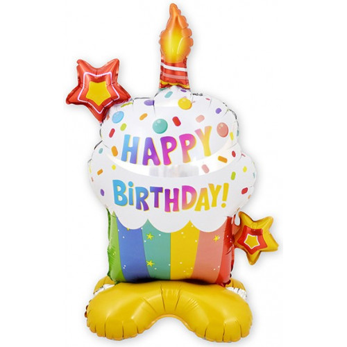 Шар 3D (22''/56 см) Фигура на подставке,(воздух) Кекс на День Рождения, 1 шт. в уп. Тематика: День Рождения