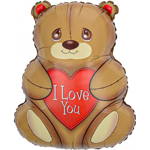 Шар (27''/69 см) Фигура, Мишка с сердцем, 1 шт