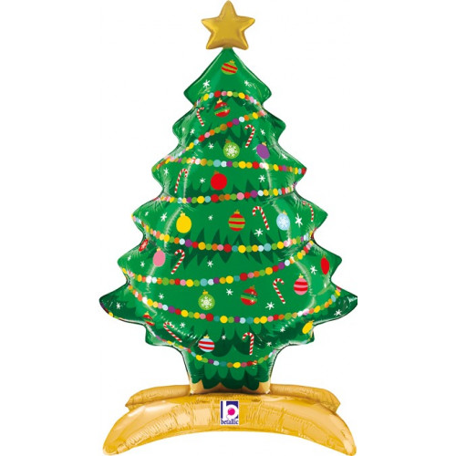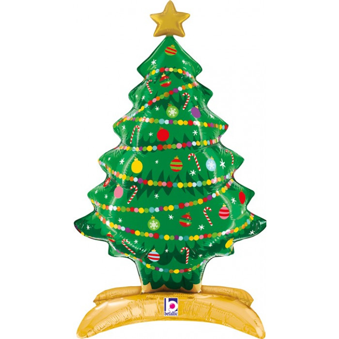 Шар 3D (32''/81 см) Фигура на подставке, Новогодняя елочка, Ярко-зеленый, (воздух)