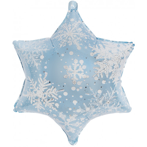 Стильно и недорого. Уникальный дизайн. Шар (19''/48 см) Фигура, Снежинка, Морозные искры, Голубой/Серебро, 1 шт. в уп. Тематика: Новый Год