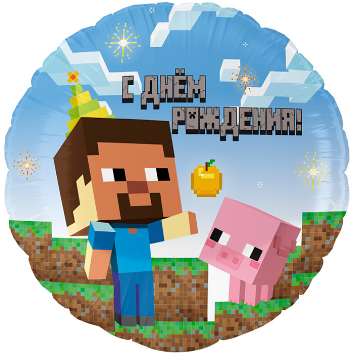 Шар (18''/46 см) Круг, Пиксели, С Днем Рождения!, 1 шт. в уп.