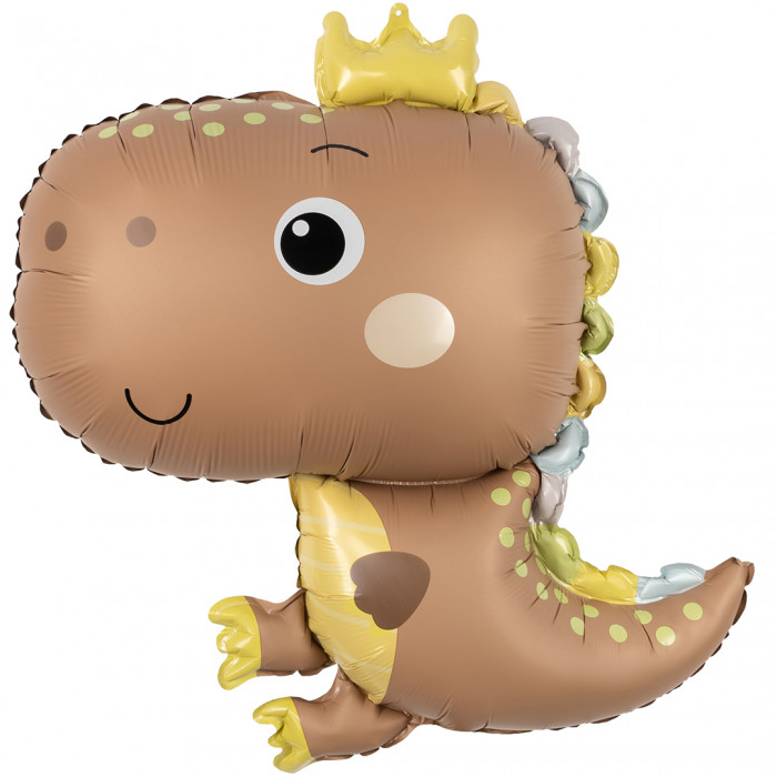 Стильно и недорого. Уникальный дизайн. Шар (31''/79 см) Фигура, Динозаврик в короне, Бежевый, Сатин, 1 шт. в уп. Тематика: Общепоздравительные