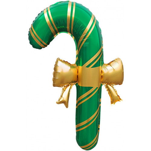 Шар (30''/76 см) Фигура (воздух) Леденец трость, Золотой бант Зеленый, 1 шт. в уп.