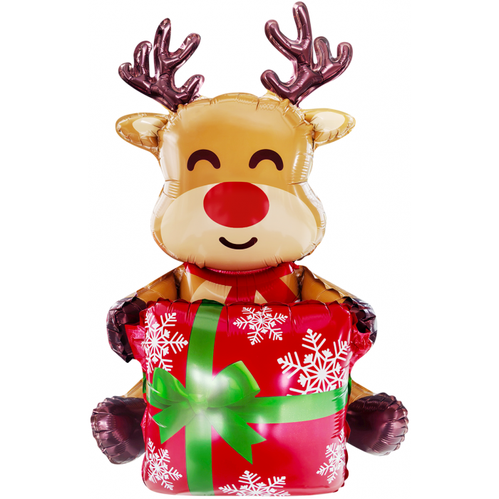 Шар 3D (44''/112 см) Фигура (воздух) Олень с подарком, 1 шт. в уп.