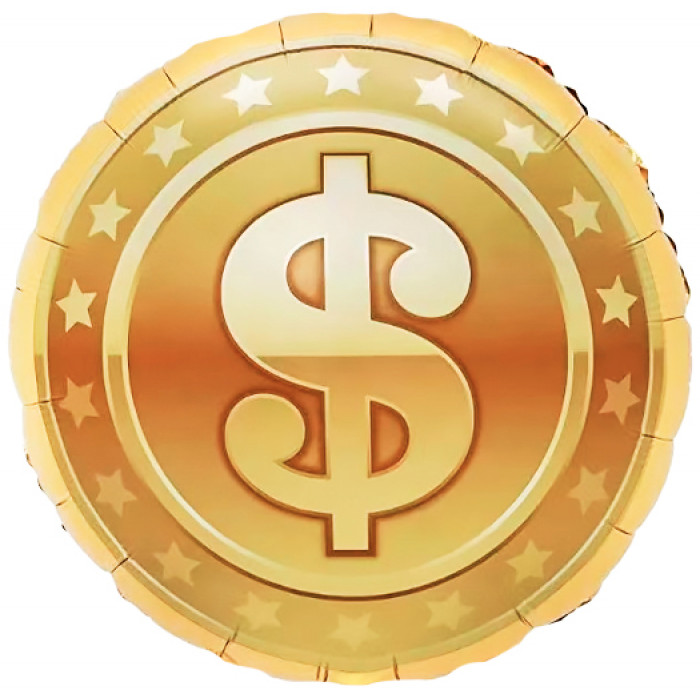 Стильно и недорого. Уникальный дизайн. Шар (18''/46 см) Круг, Знак Доллара, Золото, 1 шт. Тематика: Общепоздравительные
