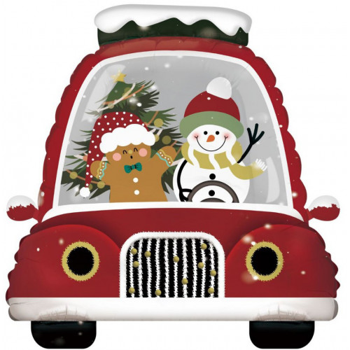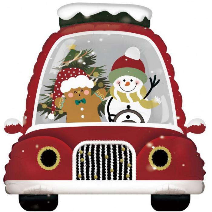 Шар (22''/56 см) Фигура, Новогодний автомобильчик, 1 шт. в уп.