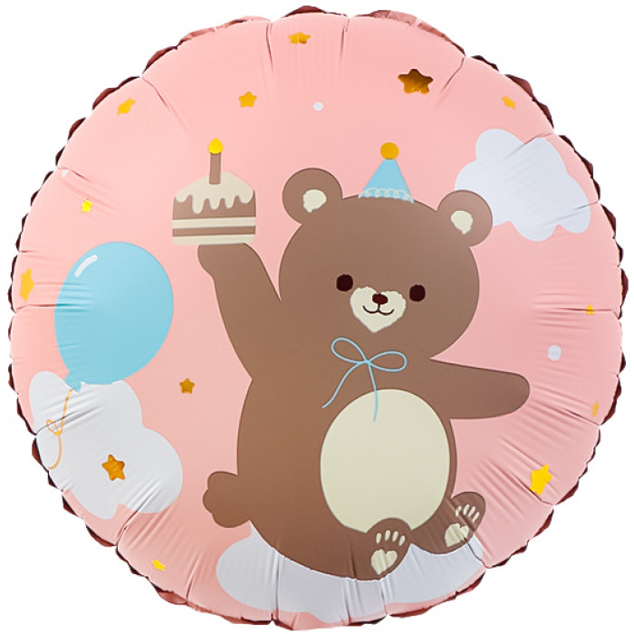 Шар (18''/46 см) Круг, Мишка с кексиком, Розовый, 1 шт. в уп.